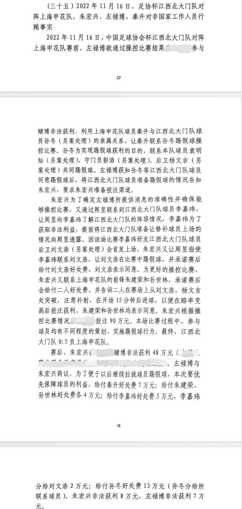 网上流传出足坛“假赌黑”案件的相关判决书,其中包括了2022年足协杯上海申花5-0江西北大门的比赛,两队多达9名球员参与。